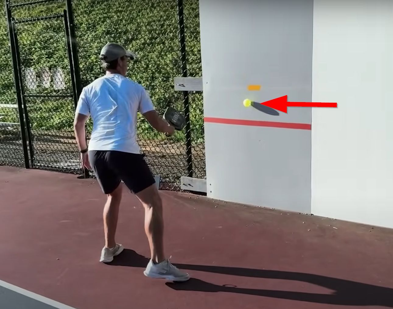 Find a good wall to practice against, whether it’s at your local courts or at your house. Take a piece of tape and place it on the wall about a foot above a marked net line. Stand a few feet away from the wall and start dinking against it. The goal here is to make your dinks peak and start to fall before they reach the wall, hitting in between the two lines of tape.