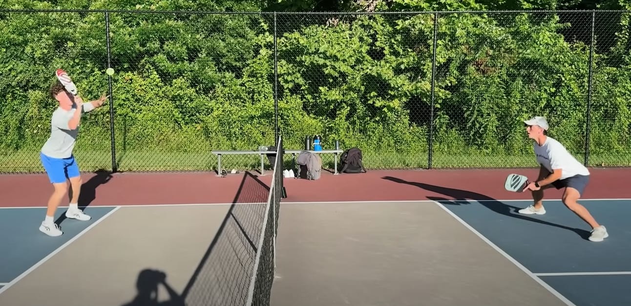 I have two words for you: seesaw effect. This tip will change the way you play at the kitchen line forever. If you pay attention to where your opponent’s paddle is located when they are about to make a shot, you can tell what type of shot they are about to hit, allowing you to prepare properly.