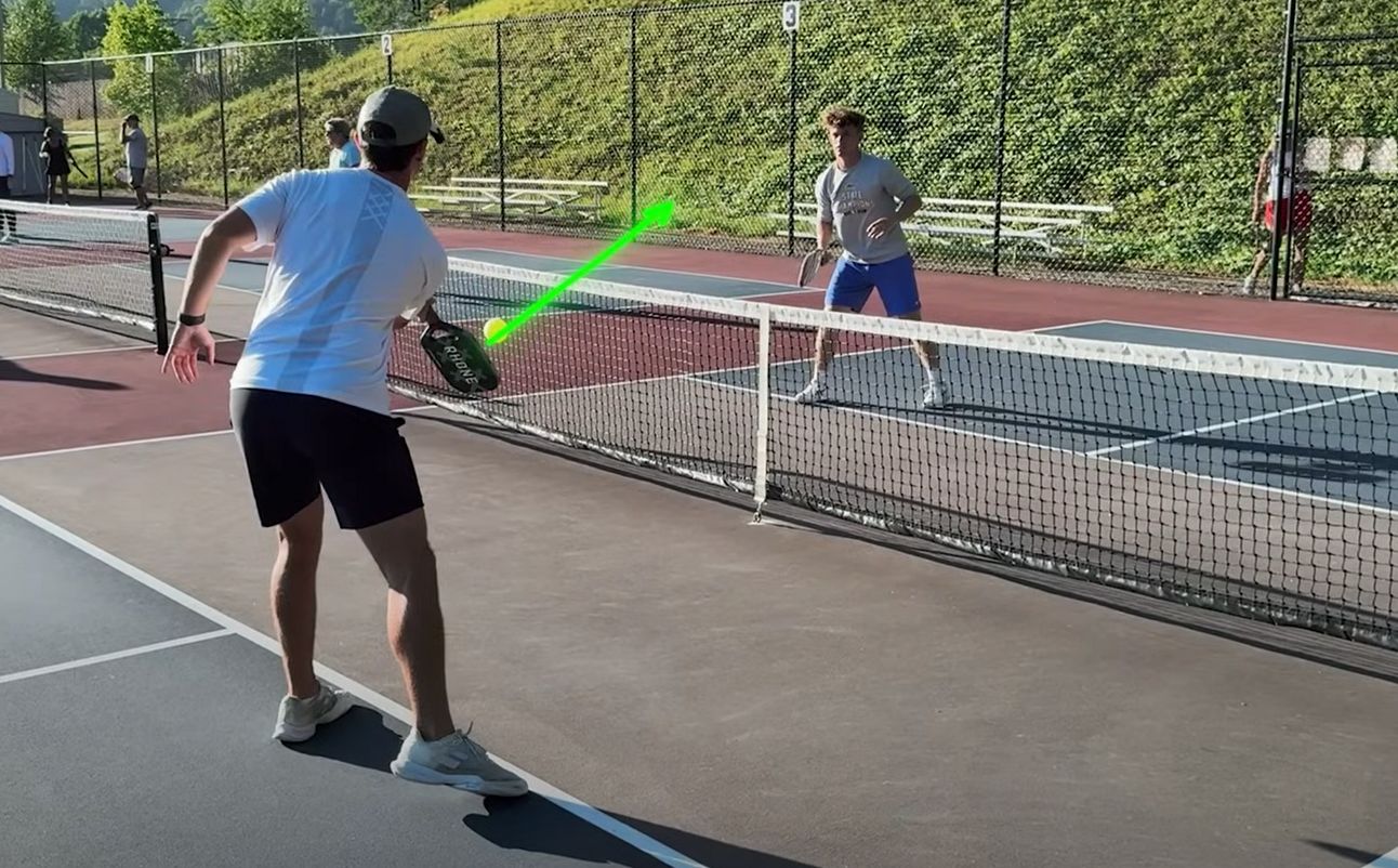 Last week we talked about shot peaking on drops, and it’s something you should apply to dinks as well. If you hit higher dinks that land in the back half of the kitchen, you’re giving your opponent an easy ball to attack. Instead, your dinks should peak on your side of the court before crossing the plane of the net. This allows them to land in the shallow part of the kitchen, making them a lot more difficult for your opponent to speed up.