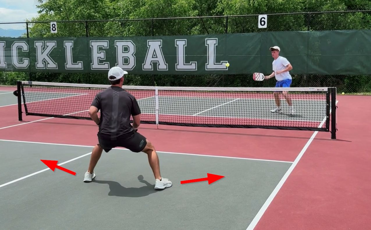 As you move up, split-step BEFORE your drilling partner makes contact with the ball.