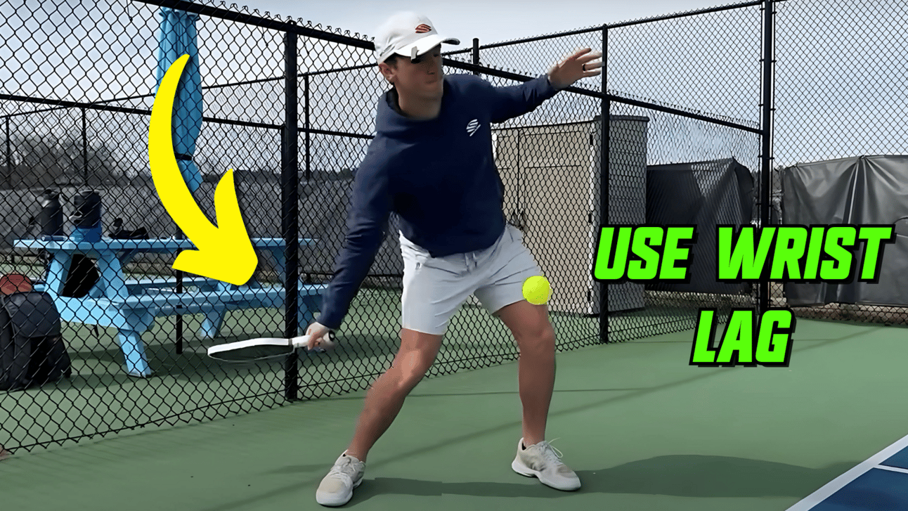 When you have that solid foundation, try adding a bit of wrist motion after contact with the ball to generate more spin and power. To do this, you need to use what’s called ‘wrist lag.’ That just means letting your wrist bend back slightly during the swing so your paddle trails behind (see image below). Then, as you strike the ball, snap your wrist forward while keeping your follow-through compact and clean. You’ll feel and see the difference in your shot - the ball will have more spin and speed than before.